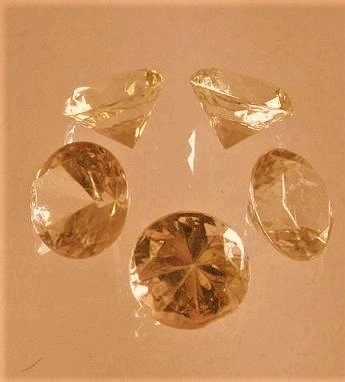 Dekoartikel: Acryl-Brillanten geschliffen in Dekobox, ca. 19 mm DM, Höhe ca. 13 mm, bernstein, 80 gr. in Klarsichtbox, entsprechen mind. 40 Stück