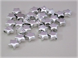 Dekoartikel: Dekosterne aus Kunststoff/Acryl, silber opak, ca. 12 mm DM, 50 gr. im Beutel, entsprechen mind. 65 bis 80 Stück oder ca. 80 ml