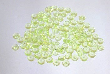 Dekoartikel: Acryl-Raindrops transparent, ca. 5-7 mm DM, Dicke ca. 3 mm, Farbe hellgrün, 50 gr. im Beutel, entsprechen mind. 550 Stück oder ca. 85 ml
