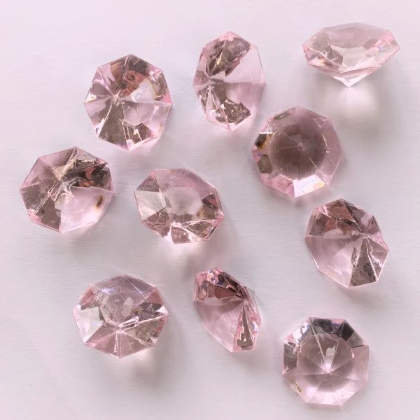Beutel Acrylsteine, geschliffen, ca. 32 mm gross, Form: kegelförmig, Farbe rosa, 10 Stck., ca. 75 gr- Beutel, transparente Steine.