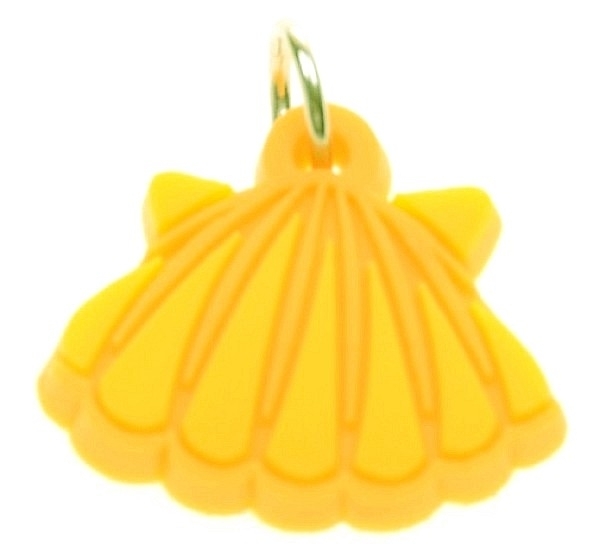 Detail-Beschreibung: Charms Motiv Muschel mit Metallöse, Farbe orange-gelb, 1,5 mm dick und 1,5x2 cm, Material: Gummi; z. B. für Bettelarmbänder, Taschenanhänger Trendy bags, Loombänder Loom bands, Scoubidoubänder und allen anderen Flechtbändern bestens geeignet.