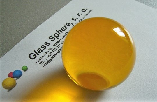 Hochwertiger Kristallglaskugel Briefbeschwerer mit Standfläche in sonnengelb, ca. 9 cm Durchmesser, 900 gramm