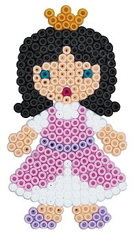 Inhalt dieser Bügelperlen Packung aus der Hamaperlen Midi-Serie: ca. 4000 Perlen, 2 Stiftplatten: Quadrat gross und Puppe, 2 Motivstützen, Motiv- Vorlage, Anleitung und Backpapier.
