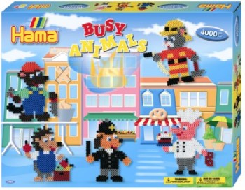 Inhalt dieser Bügelperlen Packung aus der Hamaperlen Midi-Serie: ca. 4000 Perlen, 2 viereckige große Stiftplatten Multi, Motiv- Vorlage, Anleitung und Backpapier.