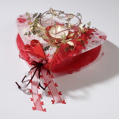 CREApop® Bastelset, Teelichthalter Herzform, Folie selbstklebend, 4-tlg, Maße Seitenteile: jew. 18 x 11 cm, Maße Hauptteile: jew. 20 x 18 cm, vorgefertigt (gefalzt+vorgelocht) zum Zusammenklappen.