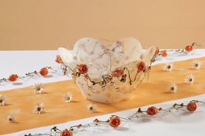 Selbstklebende Folie, vorgeschnitten, für eine Dekoschale in Blumenform. Verzierungen mit Strohseide und diversen anderen Applikationen möglich. Als besonderer Blickfang für Ihr Zuhause!