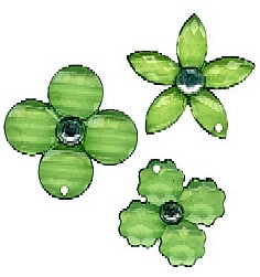 Acrylblumen grün zum Kleben oder Nähen, 9 Stck. sortiert