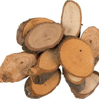 Naturbelassene Dekoscheiben aus Holz, verschiedene Größen zw. 40 und 80 mm, länglich-oval, geeignet für rustikale Dekorationen und Bastelarbeiten aller Art.