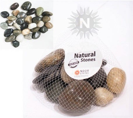 Produkt: Deko Flußsteine Natur Kieselsteine Mix medium, ca. 2 bis 4 cm, 1.000 gramm im Netz, mind. 30 Stück