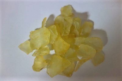 Glassteine, Sea glass gebrochen und transparent-matt in currygelb, 700-gr Dose, Länge der Glassteine meist 2 bis 4 cm, Dicke/Körnungsgrösse variabel zwischen min. 0,2 cm und bis max. 1,5 cm, unterschiedliche Stücke aus Glasbruch.