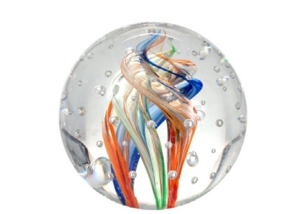 Dieser Glaskugel-Briefbeschwerer, auch Traumglaskugel genannt, hat eine Standfläche.