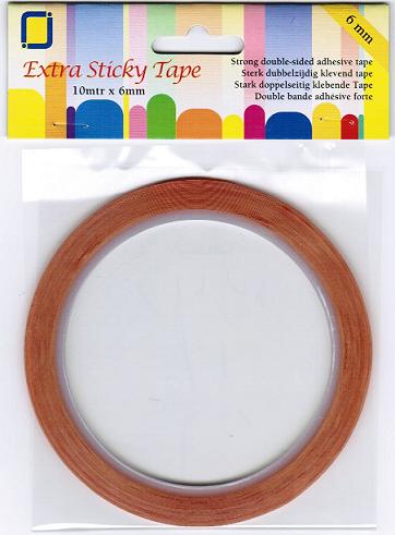 Dieses extra starke doppelseitige Basteltape transparent ist 6 mm breit und es befinden sich 10 Meter auf der Rolle.