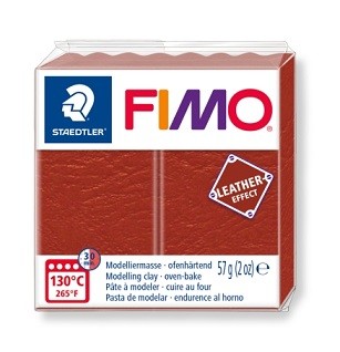 FIMO Leather Effekt, 57gr, Modelliermasse mit sichtbarer Lederoptik nach Aushärtung, rostrot