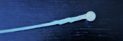 Weisse Gänsefeder mit Stiel in blau, ca. 35 cm lang.