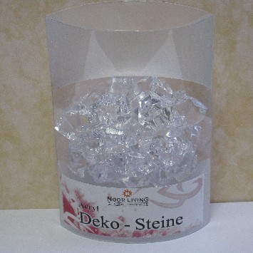 Transparente Dekosteine aus Acryl, mindestens 25 Stck. in einer dekorativen transparenten Plastikbox, zur Verwendung für allgemeine Dekoration drinnen und draussen oder als kleines Präsent.
