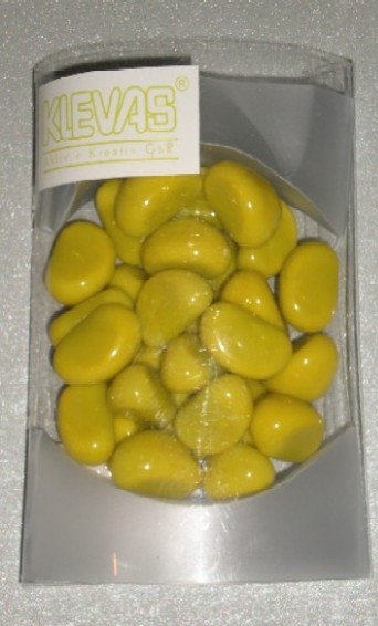 Dekobox Glassteine "gelb opal", ca. 20 x 15 mm, 200 gr Plastikbox weiss- transparent.