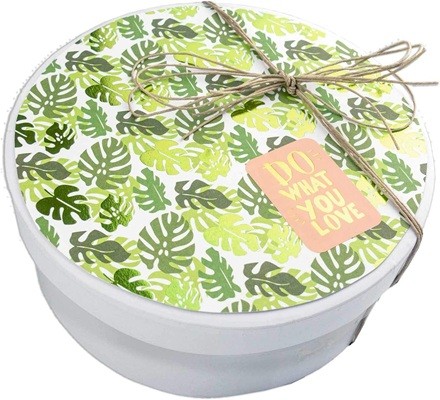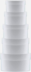 Produkt: Box aus stabilem weißen Karton, blanko roh, zum creativen Gestalten, Form rund gross, 1 Stück.