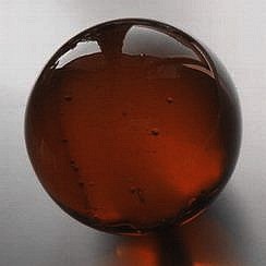 Glaskugel ( Magic glass ball ) transparent "bernstein -amber tiefdunkel", ca. 10 cm Durchmesser, 1 Stck.