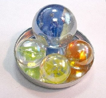 20 Murmeln mit 16 mm Durchmesser, 1 Murmel mit 25 mm Durchmesser als Set.