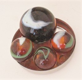 20 Murmeln mit 16 mm Durchmesser, 1 Murmel mit 25 mm Durchmesser als Set.