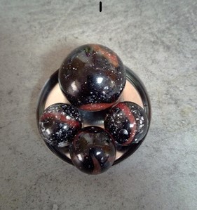 20 Murmeln mit 16 mm Durchmesser, 1 Murmel mit 25 mm Durchmesser als Set.