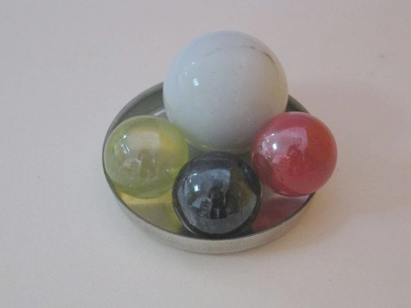 38 Murmeln mit 16 mm Durchmesser, 2 Murmeln mit 25 mm Durchmesser als Set.