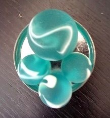 Produkt: Glasmurmeln im Netz, Serie Aliens, Frozen Windstorm, Frosteffekt, petrolfarbene Murmeln mit weißer Musterung, gefrostete Struktur, 16/25 mm, 21 Stck., 16 und 25 mm Durchmesser
