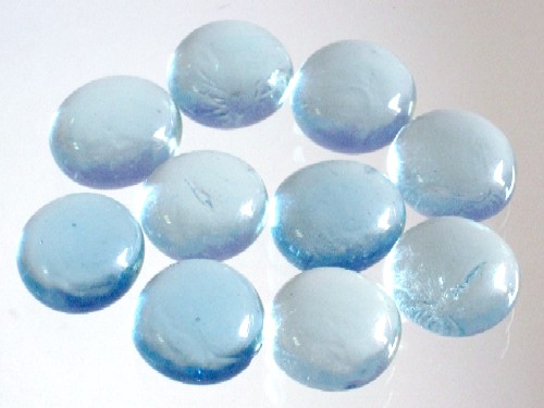 Glasnuggets mini, 2 verschiedene türkis-Blautöne ( pastelltürkis und schönes ozeanblau gemischt ), ca. 14 bis 15 mm, 100 gr - Beutel oder Netz.