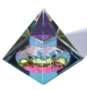 Verspiegelte, geschliffene Glaspyramide, im Geschenkkarton, aus echtem Kristallglas (Hochbleikristall 30 v.H), nahezu optisch rein.