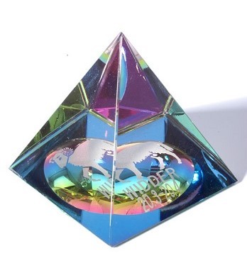 Verspiegelte, geschliffene Glaspyramide, im Geschenkkarton, aus echtem Kristallglas (Hochbleikristall 30 v.H), nahezu optisch rein.