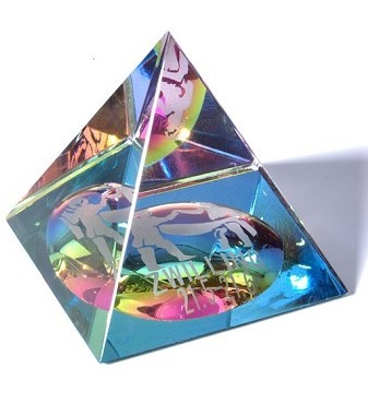 Verspiegelte, geschliffene Glaspyramide, im Geschenkkarton, aus echtem Kristallglas (Hochbleikristall 30 v.H), nahezu optisch rein.
