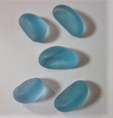 Ein Stein ist ca. 17-24 mm bohnenförmig lang (teilweise auch etwas darüber). Diese besondere Form macht diese Glassteine sehr interessant und sind ziemlich selten.