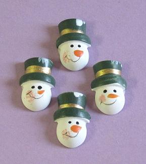 Produkt: Holz Schneemannskopf mit grünem Hut 18 mm 6 Stück