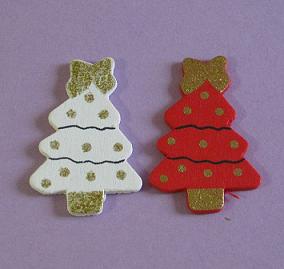 Jeder dieser kleinen weiß gold oder rot goldenen Holztannenbäume wurden aus dünnem Sperrholz geschnitten, und haben eine gold glitzernde Verzierung.