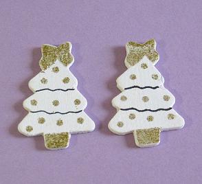 Produkt: Holz Tannenbaum, weiß gold, 40 mm, 5 Stück