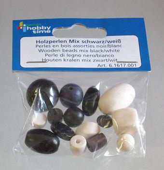 Holzperlen Formenmix, schwarze und weisse Perlen