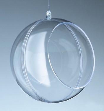 Die Acrylkugel hat auf einer Seite eine Öffnung von ca. 9 cm im Durchmesser.