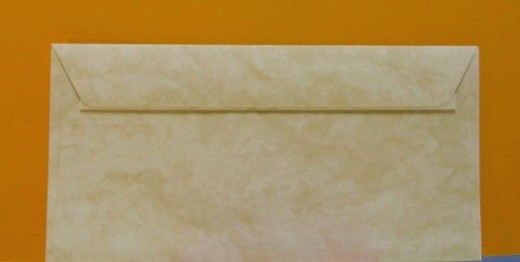 Umschlag der Grösse DIN lang ( ca. 22 x 11 cm ), Farbe "beige" marmoriert ( nicht gefüttert ).