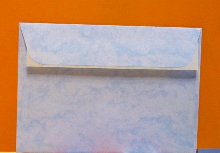 Umschlag der Grösse C 6 ( ca. 16 x 11 cm ), Farbe "cyan" marmoriert ( nicht gefüttert ).
