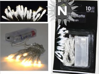Lichterkette L E D mit 10 Lämpchen, warmes weiss, batteriebetrieben ( Batterien nicht enthalten ).