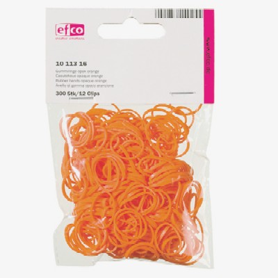 Produkt: Loom Gummiringe opak von efco, orange, deckende Farbe, 300 Stck. incl. 12 Clips im Beutel