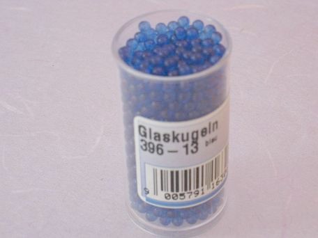 Mikro Glaskugeln microbeads, ca. 2,3-2,6 mm Durchmesser, transparent-blau 20 gramm in Dose.