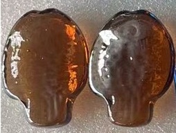 Glassteine für Aquarium, Motiv Fische, bernstein amber, ca. 40 mm Durchmesser und ca. 1,3 cm dick, 100 gr, 4 Stück.