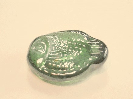 Glassteine für Aquarium, Motiv Fische, hellgrün, ca. 40 mm Durchmesser und ca. 1,3 cm dick, 500 gr, ca. 17-18 Stück.