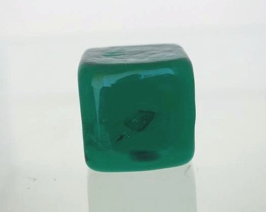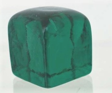 Schöner petrolfarbener Grünton, als Akzentstein bestens geeignet; der Würfel hat- üblich für Standardprodukte im Dekoglasbereich- leichte Unrundungen, ist also nicht exakt rund. Durchgefärbtes Glas!