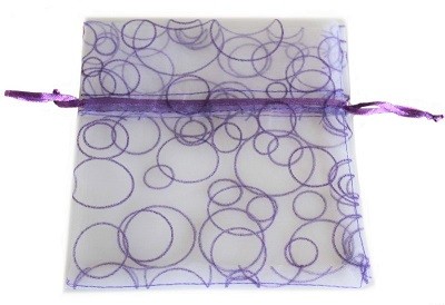 Produkt: Edles Organzasäckchen klein bedruckt mit Kringeln, 14x14 cm, flieder lila und transparent, Stück.