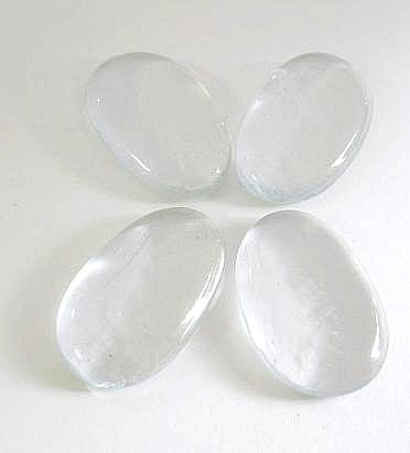 Diese schönen Muggelsteine haben unten eine glatte, gerade Fläche und eine leicht kuppelförmige Oberfläche, diese Glassteine sind transparent und ovalförmig und somit für extravagante Dekozwecke und auch für gebastelte Kühlschrankmagnete gut geeignet.