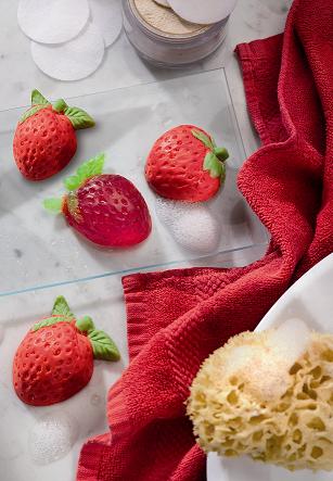 Raffiniert aussehende Seifengießform für das Gestalten schöner naturgetreuer Erdbeeren.