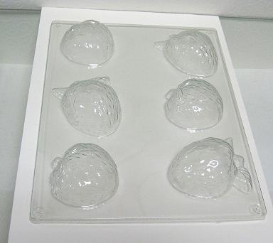 Es befinden sich auf der Seifengiessform 6 Formen Erdbeeren zum Seifegiessen.