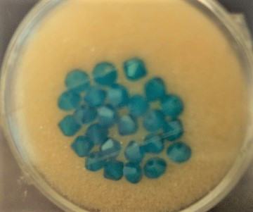 Glasperlen Auslaufartikel, Swarovski Perlen opal in hellblau-caribbean blue, 25 Stück, 4 mm Kristallschliff-Doppelkegel